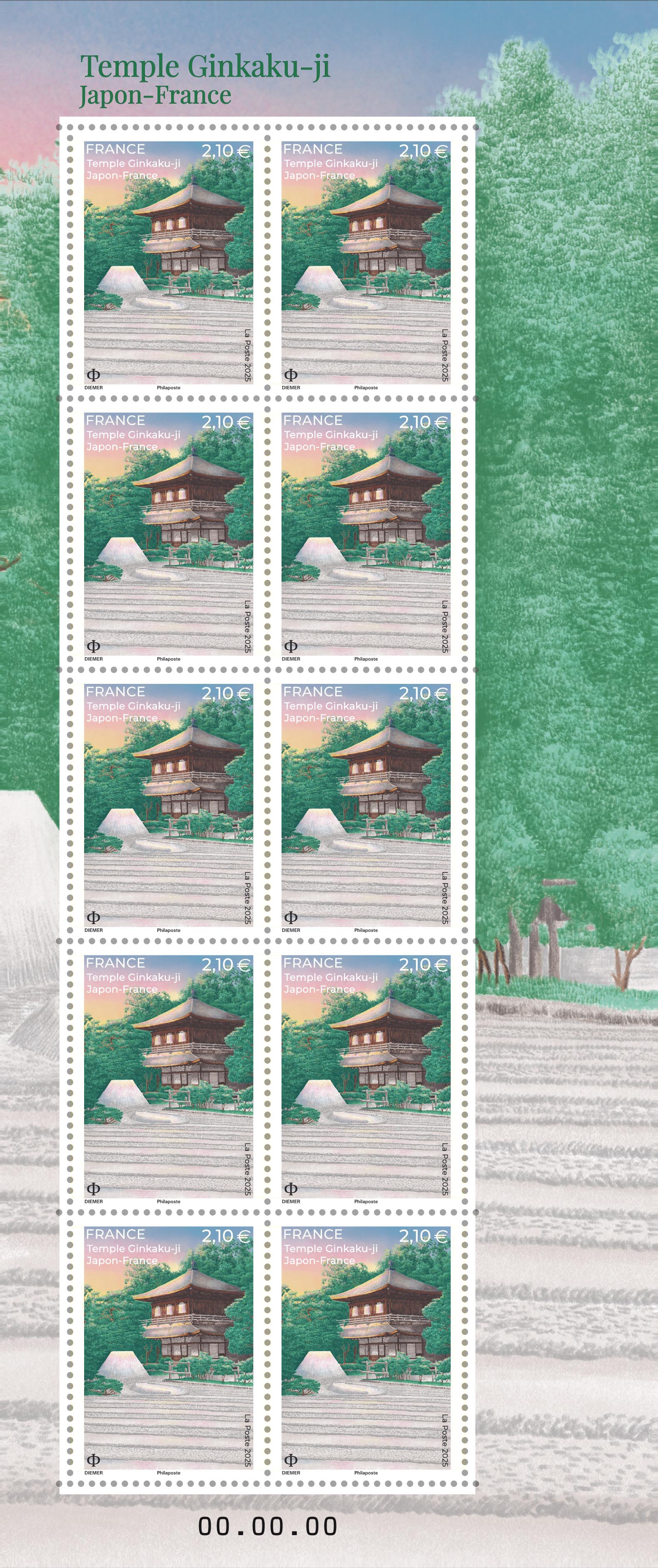 Bloc-feuillet : France-Japon - Le temple de Ginkaku-ji. |